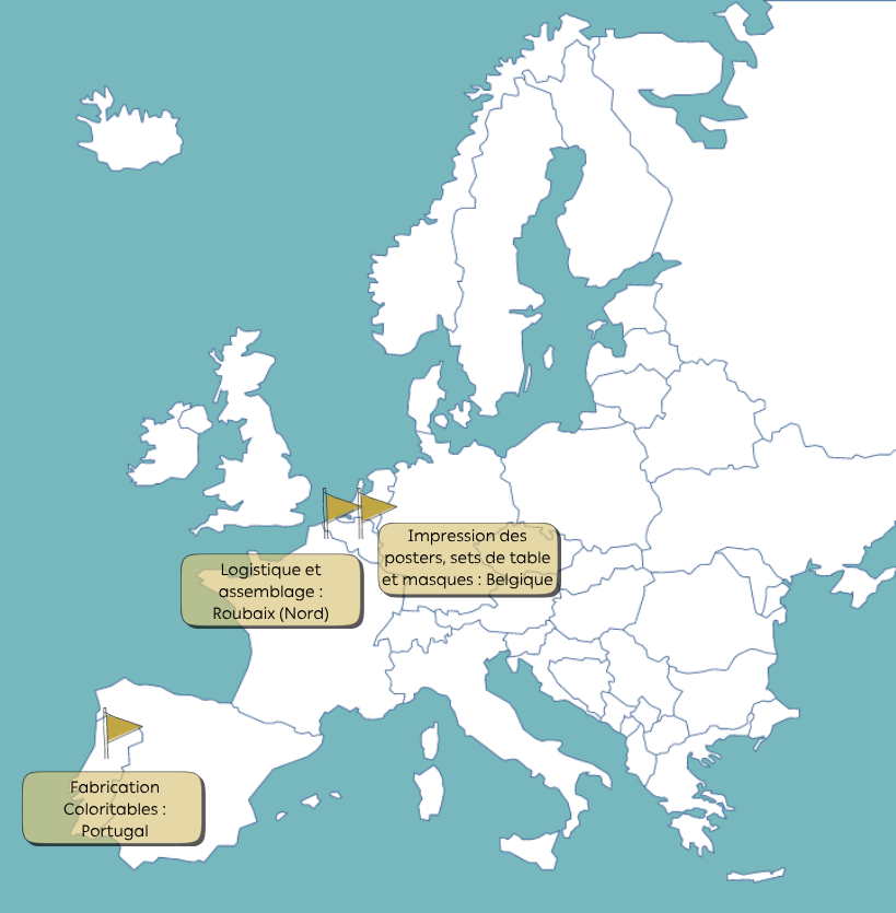 La fabrication est locale et responsable : la plupart des produits sont fabriqués en France et au Portugal, dans des ateliers et imprimeries engagés, avec des matériaux 100 % recyclables ou réutilisables. On allie fun et conscience écologique, et ça fait toute la différence !
