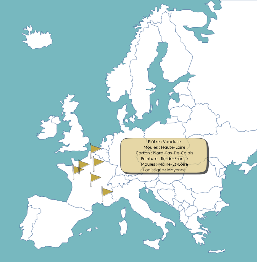 Chez MAKO MOULAGES, on ne rigole pas avec la fabrication française ! Le plâtre vient du Vaucluse, les moules en latex rouge de Haute-Loire, les accessoires en papier et carton certifiés PEFC du Nord, et la logistique est assurée en Mayenne. Du made in France à chaque étape, pour que la planète aussi ait le sourire.